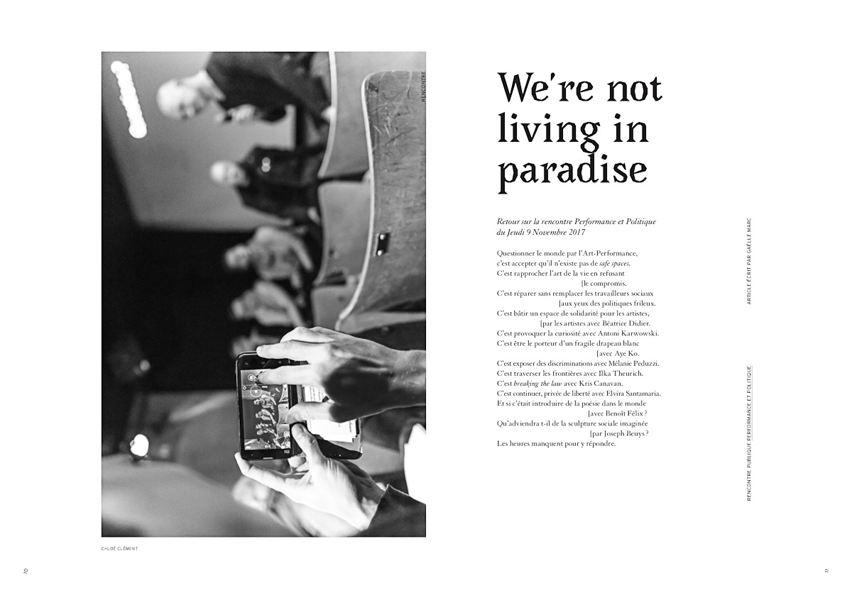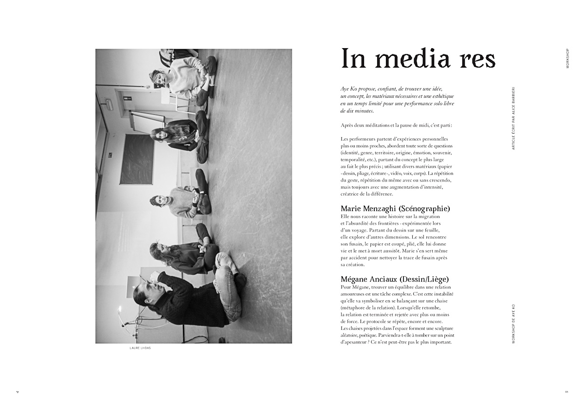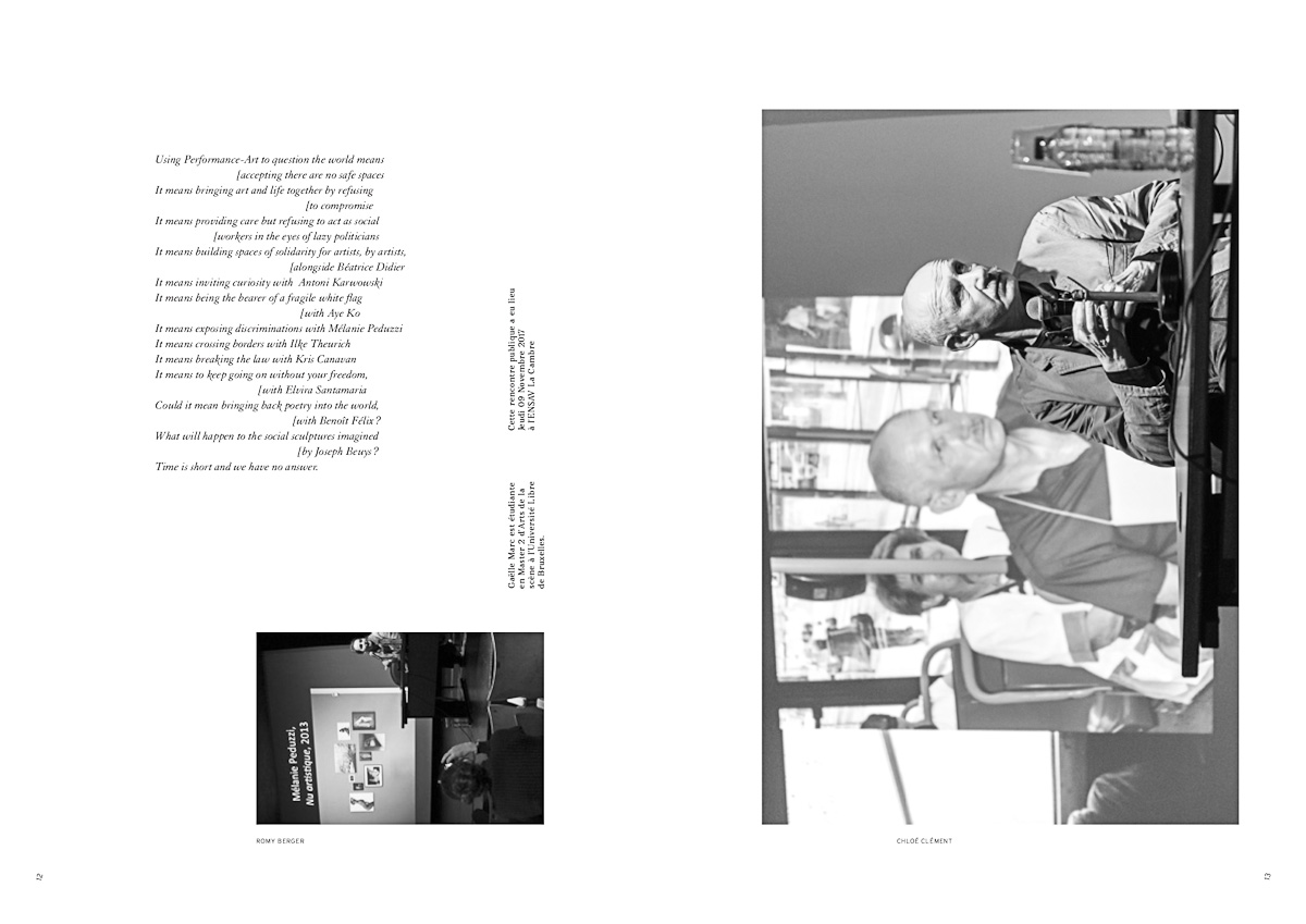 Performances Kris Canavan, Benoît Felix, Antoni Karwowski, Monica Klingler, Aye Ko, Clément Losson & Mélanie Peduzzi, Ilka Theurich