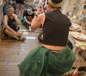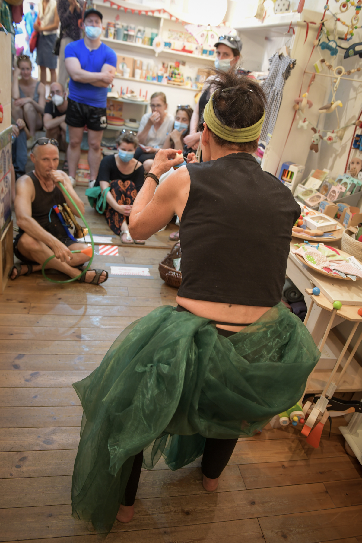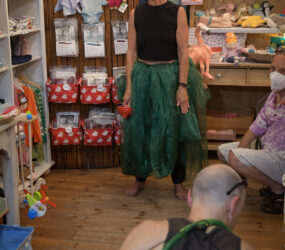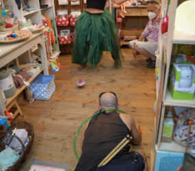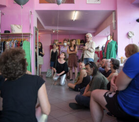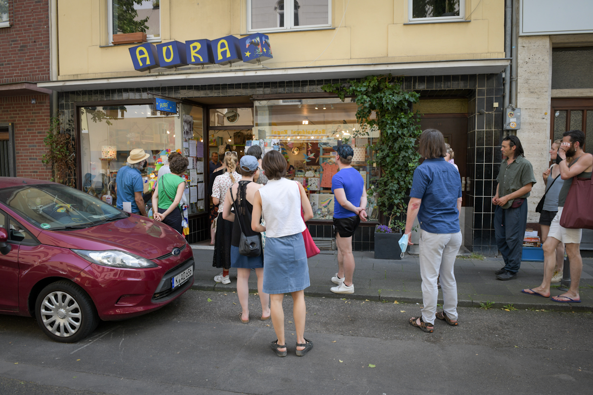 Während eines gemeinsamen Bummels durch die Ladenlokale treten Künstler*innen in Dialog mit Produkten, der geschäftlichen Umgebung und Konsument*innen. Ähnlichkeiten zwischen Lebensentwürfen von soloselbständigen Ladenbetreiber*innen und Künstler*innen sollen als qualitätsstiftende Merkmale der Stadtviertel und als Bedingung kultureller Vielfalt spürbar werden.