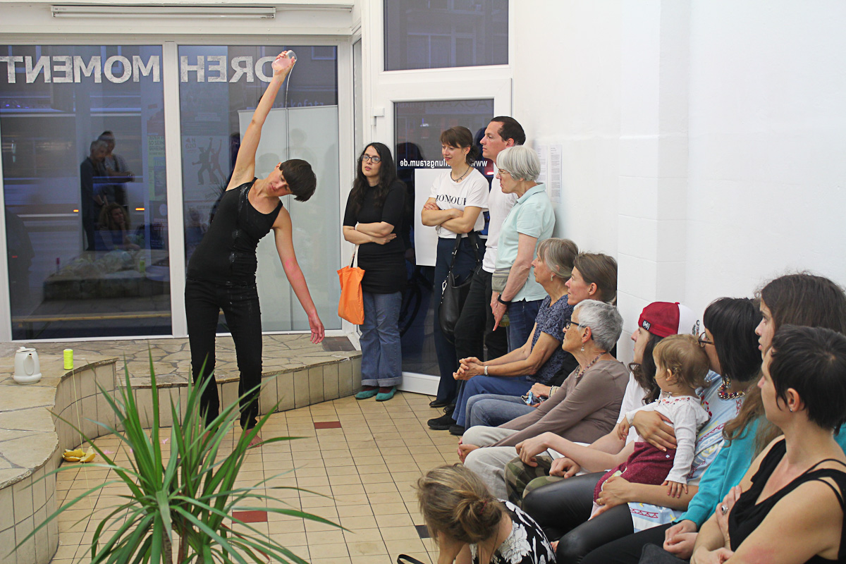 Die in Hamburg lebende Performancekünstlerin und PAErsche Assoziierte Surya Tüchler lud zu den Performancetagen „momentum“ ein und führte ehemalige Mitglieder der Performancegruppe der Hochschule für Bildende Künste Braunschweig sowie Mitglieder des PAErsche Aktionslabors zusammen.